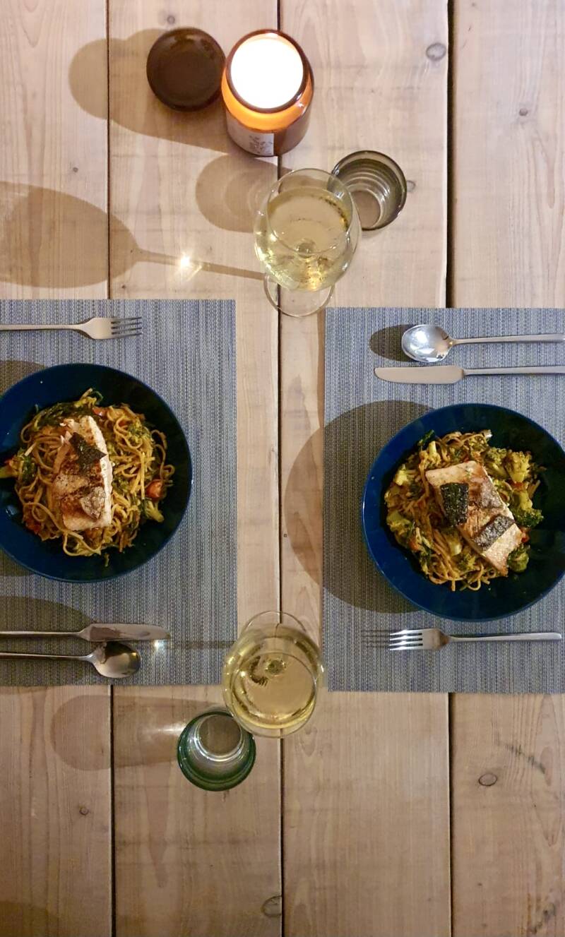 Dus, gisteren was een beetje een feestdag voor mij. En dat hebben we fijn gevierd met een heerlijke pasta met zalm en zeekraal en een lekkere vette chardonnay erbij. Celebrate the good things in life!